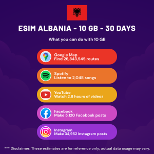 Hello, Globetrotter! 🚀 Gearing up for a journey to the world’s hidden gem, Albania? Let our 10 GB – 30 Days eSIM be your reliable digital ally, ensuring you remain connected at every step!