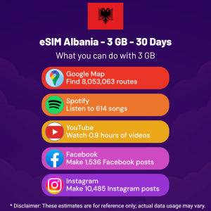 Hello, Globetrotter! 🚀 Gearing up for a journey to the world’s hidden gem, Albania? Let our 3 GB – 30 Days eSIM be your reliable digital ally, ensuring you remain connected at every step!