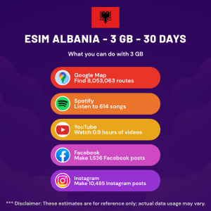 Hello, Globetrotter! 🚀 Gearing up for a journey to the world’s hidden gem, Albania? Let our 3 GB – 30 Days eSIM be your reliable digital ally, ensuring you remain connected at every step!