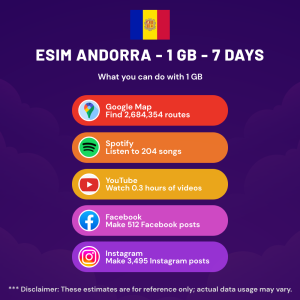 Hello, Globetrotter! 🚀 Gearing up for a journey to the world’s hidden gem, Andorra? Let our 1 GB – 7 Days eSIM be your reliable digital ally, ensuring you remain connected at every step!