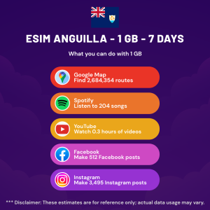 Hello, Globetrotter! 🚀 Gearing up for a journey to the world’s hidden gem, Anguilla? Let our 1 GB – 7 Days eSIM be your reliable digital ally, ensuring you remain connected at every step!