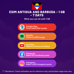 Hello, Globetrotter! 🚀 Gearing up for a journey to the world’s hidden gem, Antigua And Barbuda? Let our 1 GB – 7 Days eSIM be your reliable digital ally, ensuring you remain connected at every step!