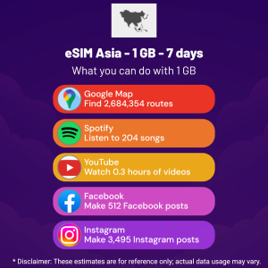 Hello, Globetrotter! 🚀 Gearing up for a journey to the world’s hidden gem, Asia? Let our 1 GB – 7 days eSIM be your reliable digital ally, ensuring you remain connected at every step!