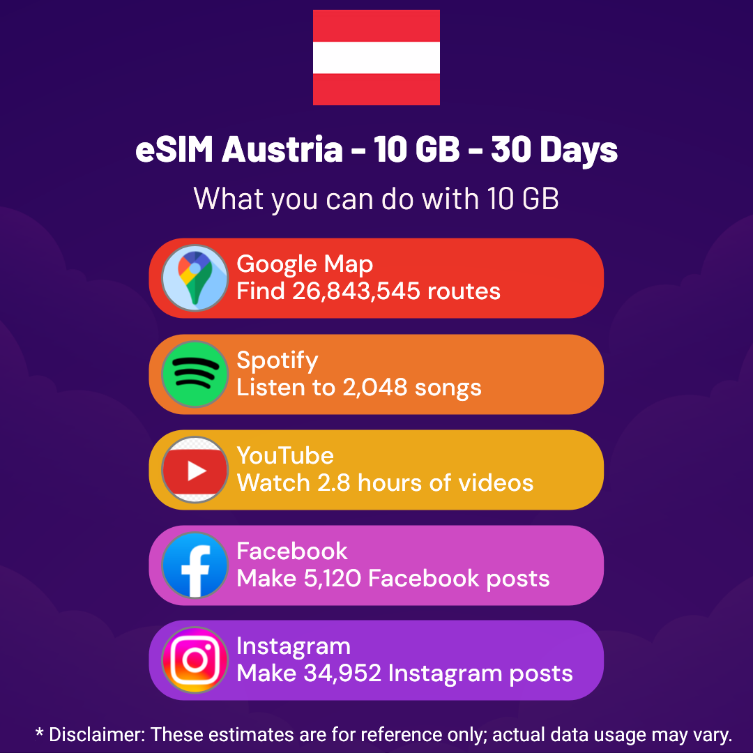 Hello, Globetrotter! 🚀 Gearing up for a journey to the world’s hidden gem, Austria? Let our 10 GB – 30 Days eSIM be your reliable digital ally, ensuring you remain connected at every step!