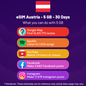 Hello, Globetrotter! 🚀 Gearing up for a journey to the world’s hidden gem, Austria? Let our 20 GB – 30 Days eSIM be your reliable digital ally, ensuring you remain connected at every step!
