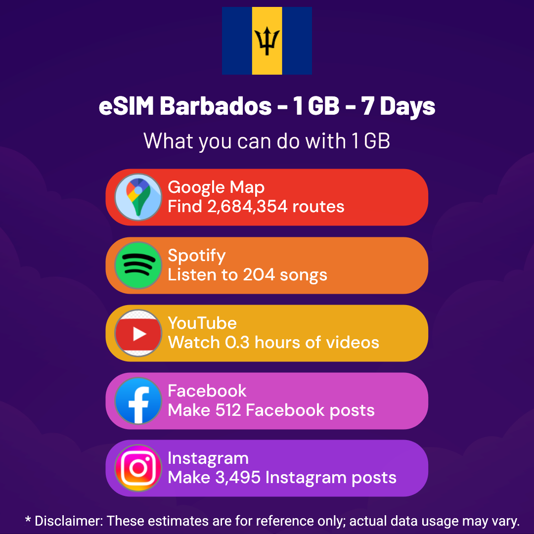 Hello, Globetrotter! 🚀 Gearing up for a journey to the world’s hidden gem, Barbados? Let our 1 GB – 7 Days eSIM be your reliable digital ally, ensuring you remain connected at every step!