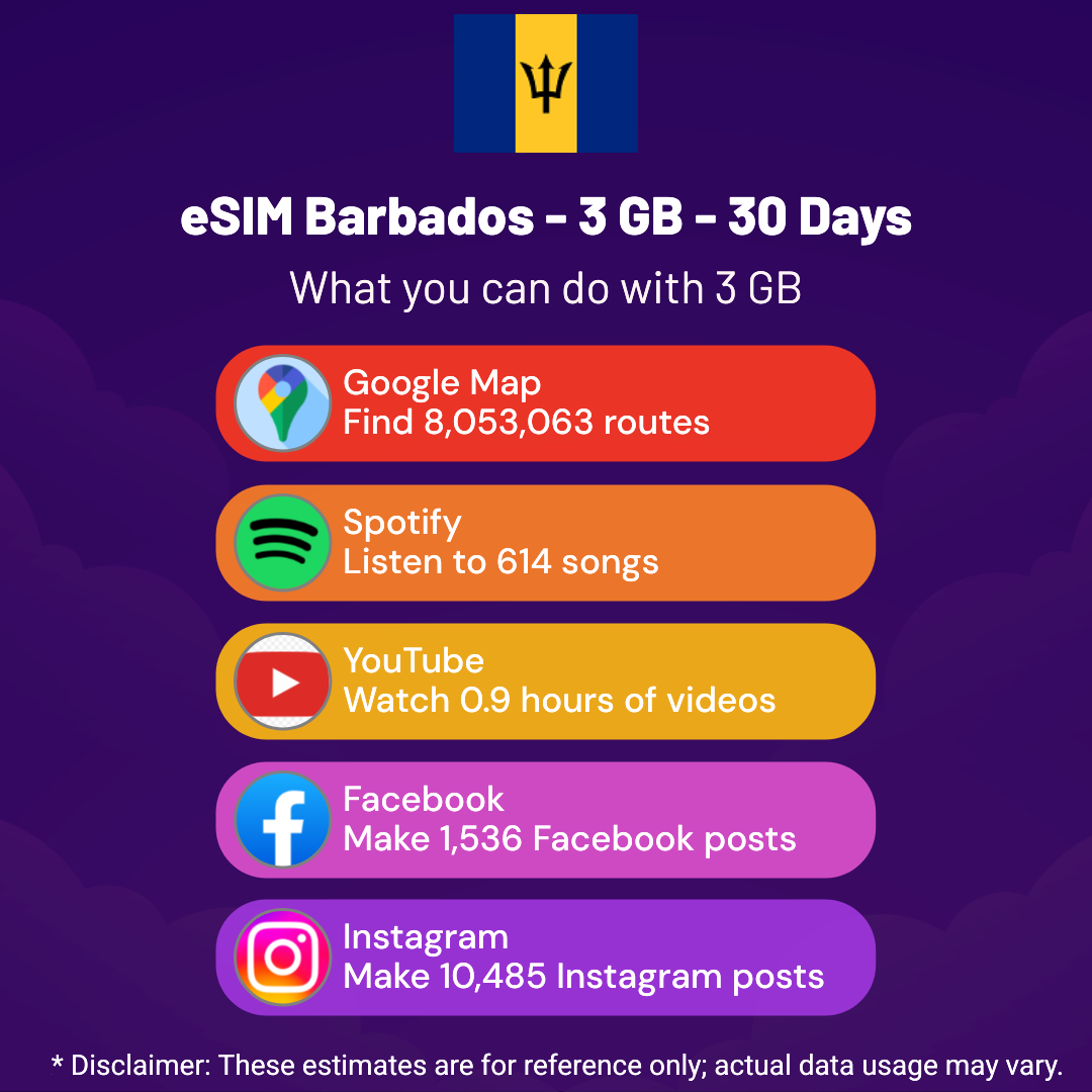 eSIM Barbados – 3 GB – 30 Days