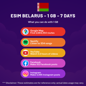 Hello, Globetrotter! 🚀 Gearing up for a journey to the world’s hidden gem, Belarus? Let our 1 GB – 7 Days eSIM be your reliable digital ally, ensuring you remain connected at every step!