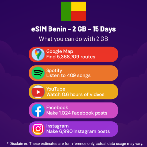 Hello, Globetrotter! 🚀 Gearing up for a journey to the world’s hidden gem, Benin? Let our 2 GB – 15 Days eSIM be your reliable digital ally, ensuring you remain connected at every step!