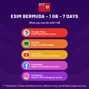Hello, Globetrotter! 🚀 Gearing up for a journey to the world’s hidden gem, Bermuda? Let our 1 GB – 7 Days eSIM be your reliable digital ally, ensuring you remain connected at every step!