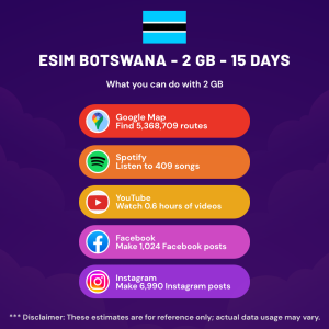 Hello, Globetrotter! 🚀 Gearing up for a journey to the world’s hidden gem, Botswana? Let our 2 GB – 15 Days eSIM be your reliable digital ally, ensuring you remain connected at every step!