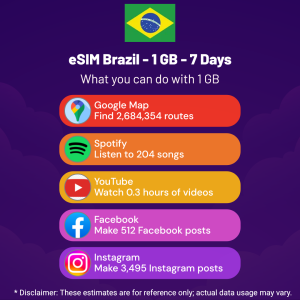Hello, Globetrotter! 🚀 Gearing up for a journey to the world’s hidden gem, Brazil? Let our 1 GB – 7 Days eSIM be your reliable digital ally, ensuring you remain connected at every step!