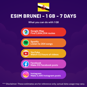 Hello, Globetrotter! 🚀 Gearing up for a journey to the world’s hidden gem, Brunei? Let our 1 GB – 7 Days eSIM be your reliable digital ally, ensuring you remain connected at every step!