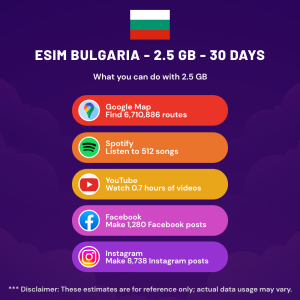 Hello, Globetrotter! 🚀 Gearing up for a journey to the world’s hidden gem, Bulgaria? Let our 2.5 GB – 30 Days eSIM be your reliable digital ally, ensuring you remain connected at every step!