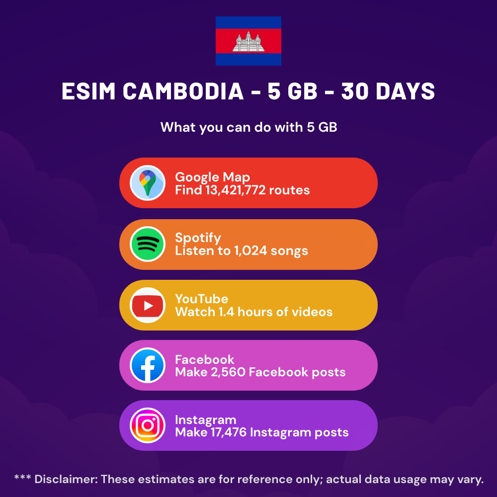 Hello, Globetrotter! 🚀 Gearing up for a journey to the world’s hidden gem, Cambodia? Let our 5 GB – 30 Days eSIM be your reliable digital ally, ensuring you remain connected at every step!