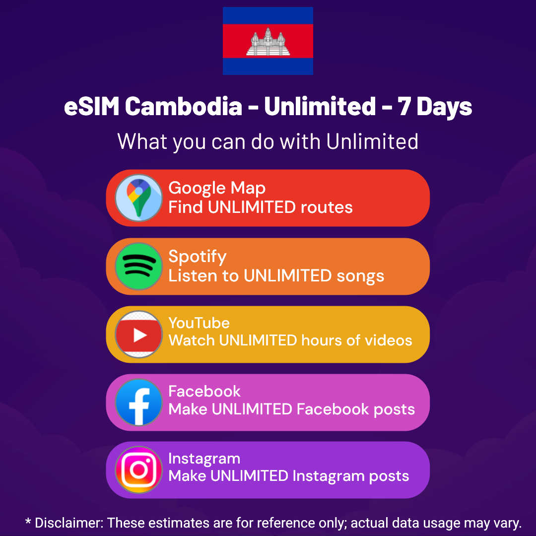 Hello, Globetrotter! 🚀 Gearing up for a journey to the world’s hidden gem, Cambodia? Let our Unlimited – 7 Days eSIM be your reliable digital ally, ensuring you remain connected at every step!