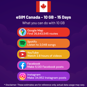 Hello, Globetrotter! 🚀 Gearing up for a journey to the world’s hidden gem, Canada? Let our 10 GB – 15 Days eSIM be your reliable digital ally, ensuring you remain connected at every step!