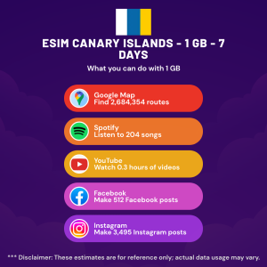 Hello, Globetrotter! 🚀 Gearing up for a journey to the world’s hidden gem, Canary Islands? Let our 1 GB – 7 Days eSIM be your reliable digital ally, ensuring you remain connected at every step!
