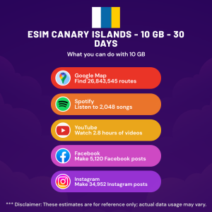 Hello, Globetrotter! 🚀 Gearing up for a journey to the world’s hidden gem, Canary Islands? Let our 10 GB – 30 Days eSIM be your reliable digital ally, ensuring you remain connected at every step!