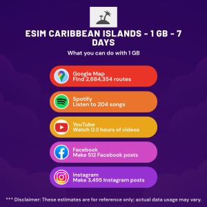 Hello, Globetrotter! 🚀 Gearing up for a journey to the world’s hidden gem, Caribbean Islands? Let our 1 GB – 7 Days eSIM be your reliable digital ally, ensuring you remain connected at every step!