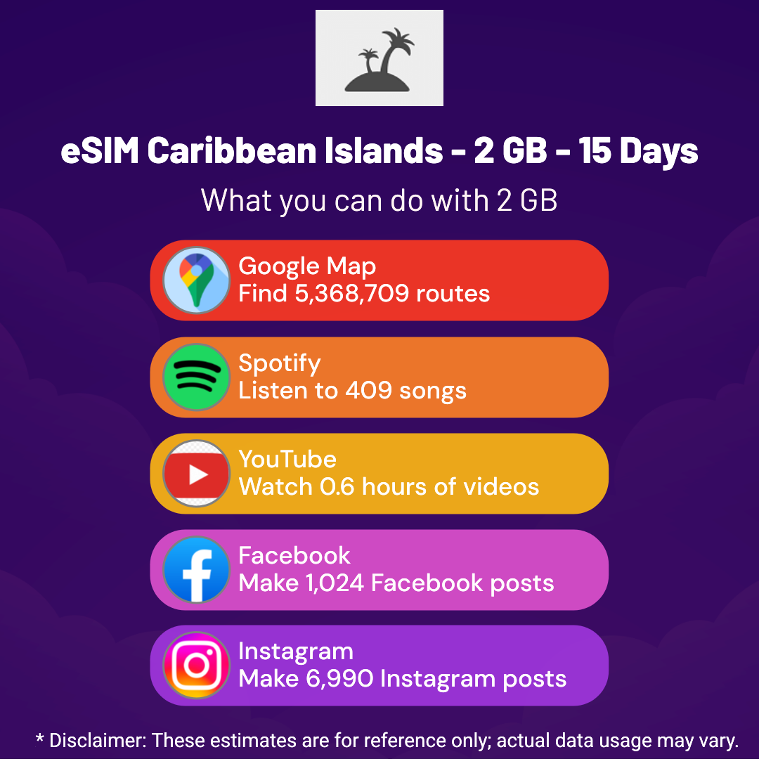 eSIM Caribbean Islands – 2 GB – 15 Days