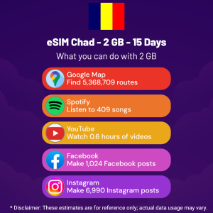 Hello, Globetrotter! 🚀 Gearing up for a journey to the world’s hidden gem, Chad? Let our 2 GB – 15 Days eSIM be your reliable digital ally, ensuring you remain connected at every step!