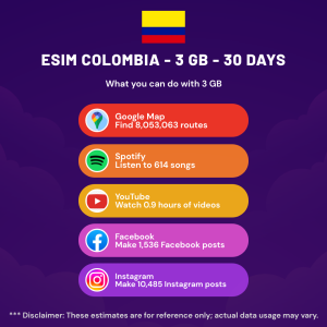 Hello, Globetrotter! 🚀 Gearing up for a journey to the world’s hidden gem, Colombia? Let our 3 GB – 30 Days eSIM be your reliable digital ally, ensuring you remain connected at every step!