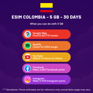 Hello, Globetrotter! 🚀 Gearing up for a journey to the world’s hidden gem, Colombia? Let our 5 GB – 30 Days eSIM be your reliable digital ally, ensuring you remain connected at every step!
