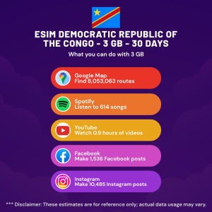 Hello, Globetrotter! 🚀 Gearing up for a journey to the world’s hidden gem, Democratic Republic Of The Congo? Let our 3 GB – 30 Days eSIM be your reliable digital ally, ensuring you remain connected at every step!