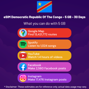 Hello, Globetrotter! 🚀 Gearing up for a journey to the world’s hidden gem, Democratic Republic Of The Congo? Let our 5 GB – 30 Days eSIM be your reliable digital ally, ensuring you remain connected at every step!