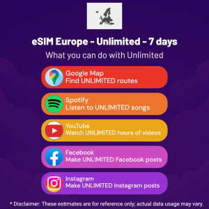 Hello, Globetrotter! 🚀 Gearing up for a journey to the world’s hidden gem, Europe? Let our Unlimited – 7 days eSIM be your reliable digital ally, ensuring you remain connected at every step!