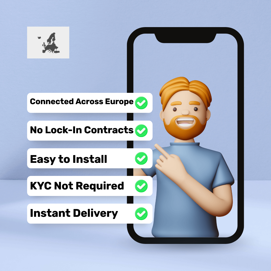 ✔️ Networks: Our Europe eSIM syncs with local network providers, ensuring uninterrupted coverage.