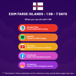 Hello, Globetrotter! 🚀 Gearing up for a journey to the world’s hidden gem, Faroe Islands? Let our 1 GB – 7 Days eSIM be your reliable digital ally, ensuring you remain connected at every step!