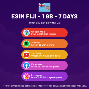 Hello, Globetrotter! 🚀 Gearing up for a journey to the world’s hidden gem, Fiji? Let our 1 GB – 7 Days eSIM be your reliable digital ally, ensuring you remain connected at every step!