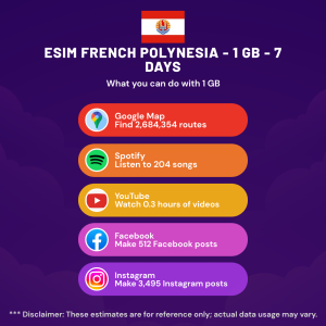 Hello, Globetrotter! 🚀 Gearing up for a journey to the world’s hidden gem, French Polynesia? Let our 1 GB – 7 Days eSIM be your reliable digital ally, ensuring you remain connected at every step!