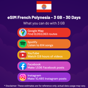 Hello, Globetrotter! 🚀 Gearing up for a journey to the world’s hidden gem, French Polynesia? Let our 3 GB – 30 Days eSIM be your reliable digital ally, ensuring you remain connected at every step!