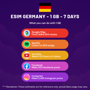 Hello, Globetrotter! 🚀 Gearing up for a journey to the world’s hidden gem, Germany? Let our 1 GB – 7 Days eSIM be your reliable digital ally, ensuring you remain connected at every step!