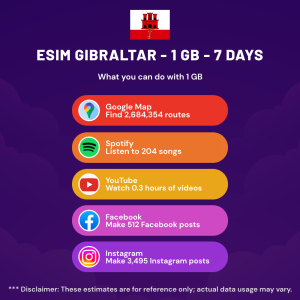 Hello, Globetrotter! 🚀 Gearing up for a journey to the world’s hidden gem, Gibraltar? Let our 1 GB – 7 Days eSIM be your reliable digital ally, ensuring you remain connected at every step!