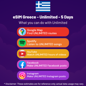 Hello, Globetrotter! 🚀 Gearing up for a journey to the world’s hidden gem, Greece? Let our Unlimited – 5 Days eSIM be your reliable digital ally, ensuring you remain connected at every step!