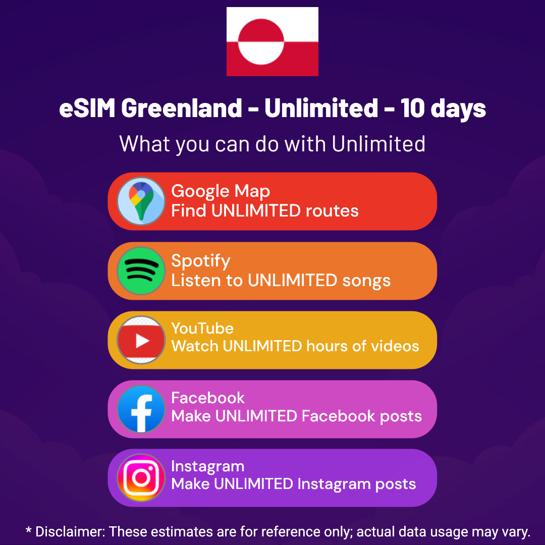 Hello, Globetrotter! 🚀 Gearing up for a journey to the world’s hidden gem, Greenland? Let our Unlimited – 10 days eSIM be your reliable digital ally, ensuring you remain connected at every step!