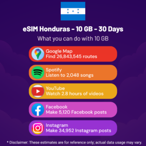 Hello, Globetrotter! 🚀 Gearing up for a journey to the world’s hidden gem, Honduras? Let our 10 GB – 30 Days eSIM be your reliable digital ally, ensuring you remain connected at every step!