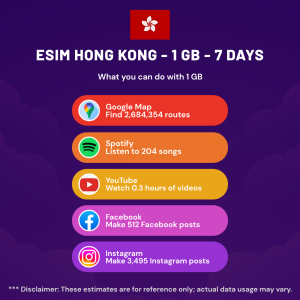 Hello, Globetrotter! 🚀 Gearing up for a journey to the world’s hidden gem, Hong Kong? Let our 1 GB – 7 days eSIM be your reliable digital ally, ensuring you remain connected at every step!