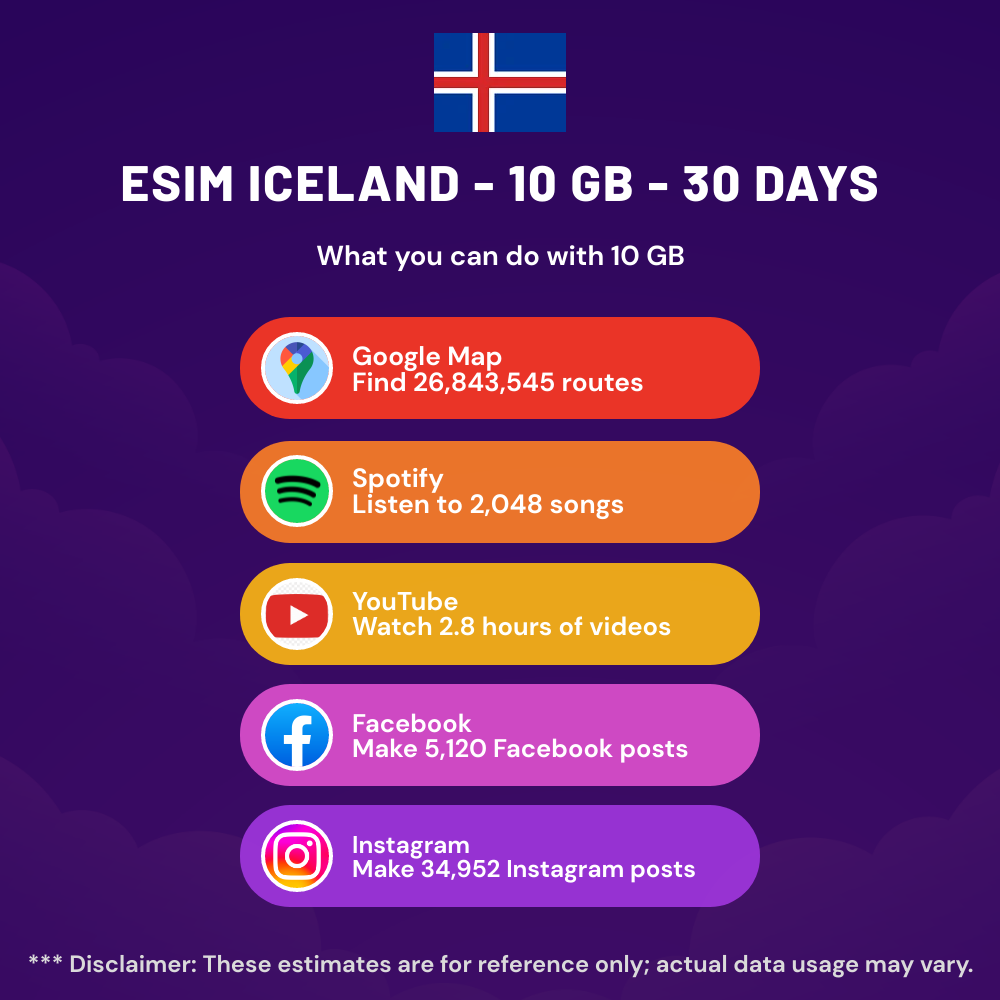Hello, Globetrotter! 🚀 Gearing up for a journey to the world’s hidden gem, Iceland? Let our 10 GB – 30 Days eSIM be your reliable digital ally, ensuring you remain connected at every step!