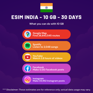 Hello, Globetrotter! 🚀 Gearing up for a journey to the world’s hidden gem, India? Let our 10 GB – 30 Days eSIM be your reliable digital ally, ensuring you remain connected at every step!