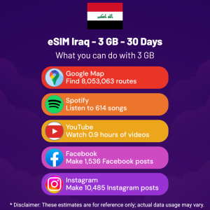 Hello, Globetrotter! 🚀 Gearing up for a journey to the world’s hidden gem, Iraq? Let our 3 GB – 30 Days eSIM be your reliable digital ally, ensuring you remain connected at every step!