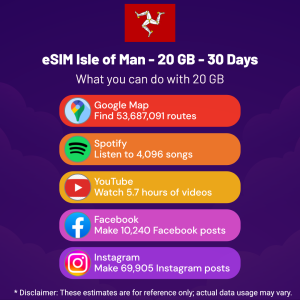 Hello, Globetrotter! 🚀 Gearing up for a journey to the world’s hidden gem, Isle of Man? Let our 20 GB – 30 Days eSIM be your reliable digital ally, ensuring you remain connected at every step!