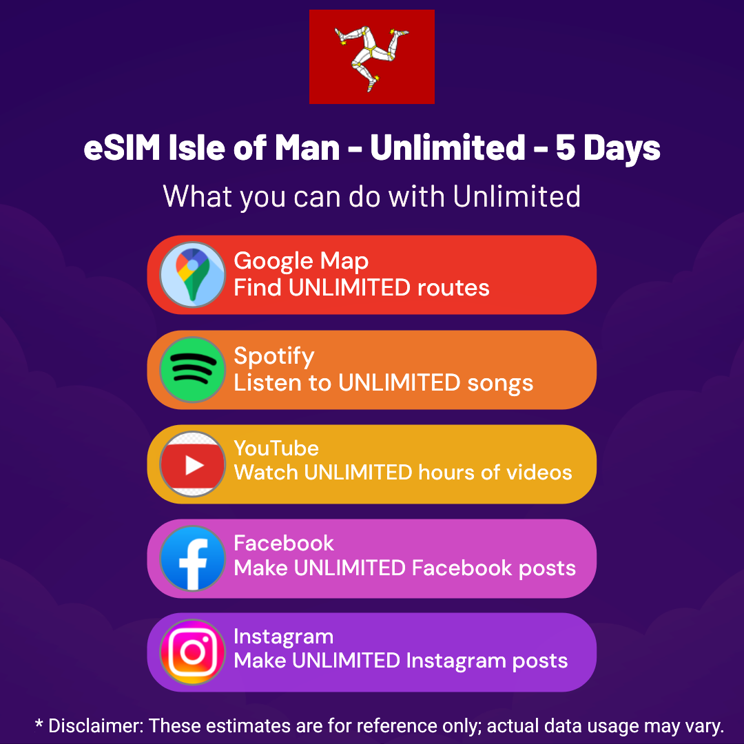 Hello, Globetrotter! 🚀 Gearing up for a journey to the world’s hidden gem, Isle of Man? Let our Unlimited – 5 Days eSIM be your reliable digital ally, ensuring you remain connected at every step!