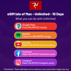 Hello, Globetrotter! 🚀 Gearing up for a journey to the world’s hidden gem, Isle of Man? Let our Unlimited – 10 Days eSIM be your reliable digital ally, ensuring you remain connected at every step!