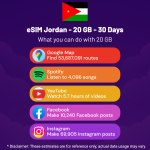 eSIM Jordan – 20 GB – 30 Days