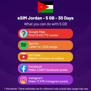 Hello, Globetrotter! 🚀 Gearing up for a journey to the world’s hidden gem, Jordan? Let our 5 GB – 30 Days eSIM be your reliable digital ally, ensuring you remain connected at every step!